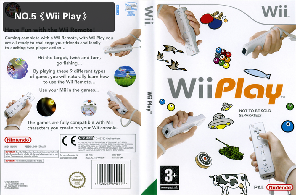 任何一位购买Wii的玩家都会有Wii Sports。 Wii Play是被绑定Wii Sports的一个自然衍生。Wii Play尽管评价一般,但是它卖出2700万份,为任天堂带来了10亿2500美金的营业额。8/11