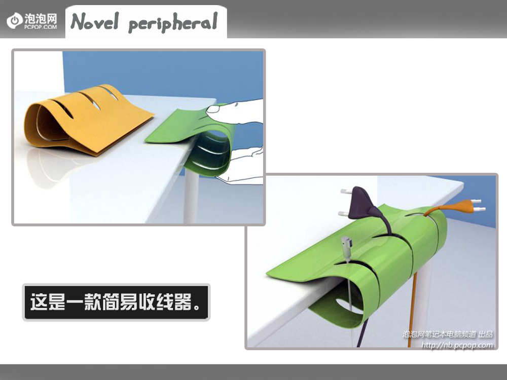 想要整洁地收纳手机充电器、电脑插头等各种电源插头并不是一件多么困难的事情——你只需将这款收线器“夹”在桌子的边缘上,将各类插头一一摆好便可以啦。是不是非常方便呢?创意,其实就是这么简单。5/12
