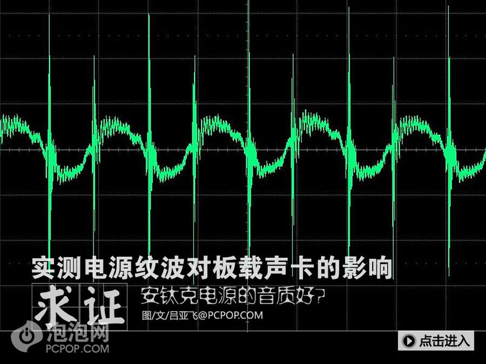我们选择了电源测试中的纹波测试来做为对声卡音质影响的参考项。因为纹波能够产生谐波,从而对电子元器件造成干扰,因此我们也可以将它看作是对音质优劣的最直接干扰源。