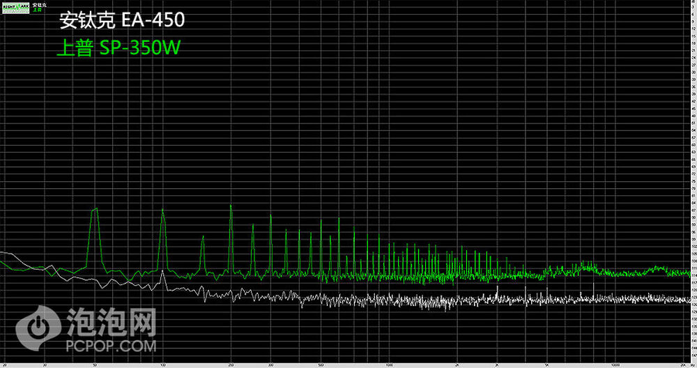 好吧,一眼可以看到区别。上普SP-350W在高频处的波动,而安钛克EA-450的表现则非常平直。好吧,我这是在为HiFi玄学摇旗呐喊吗?