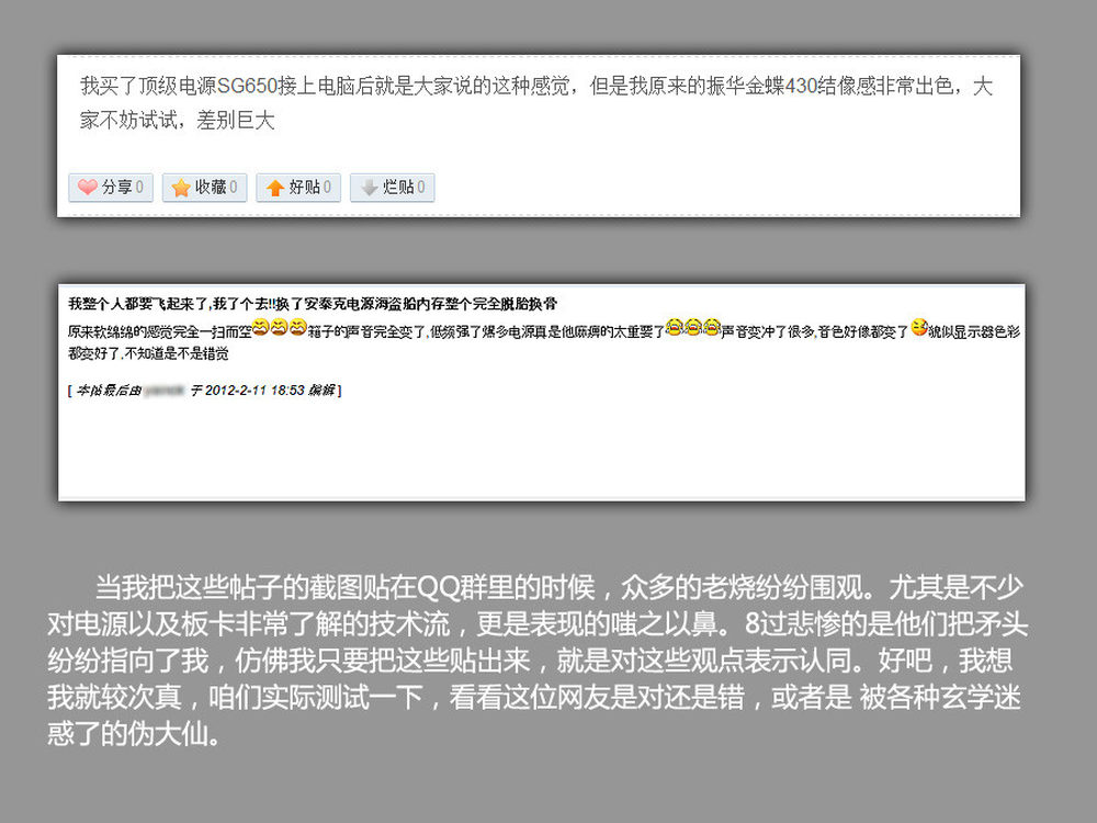 事情的起因是在有一天逛论坛的时候,虽然我们早就知道电源会对音质有一些影响,但是像上面这位兄弟这样能够听出天壤之别,是不是有点太邪乎了?