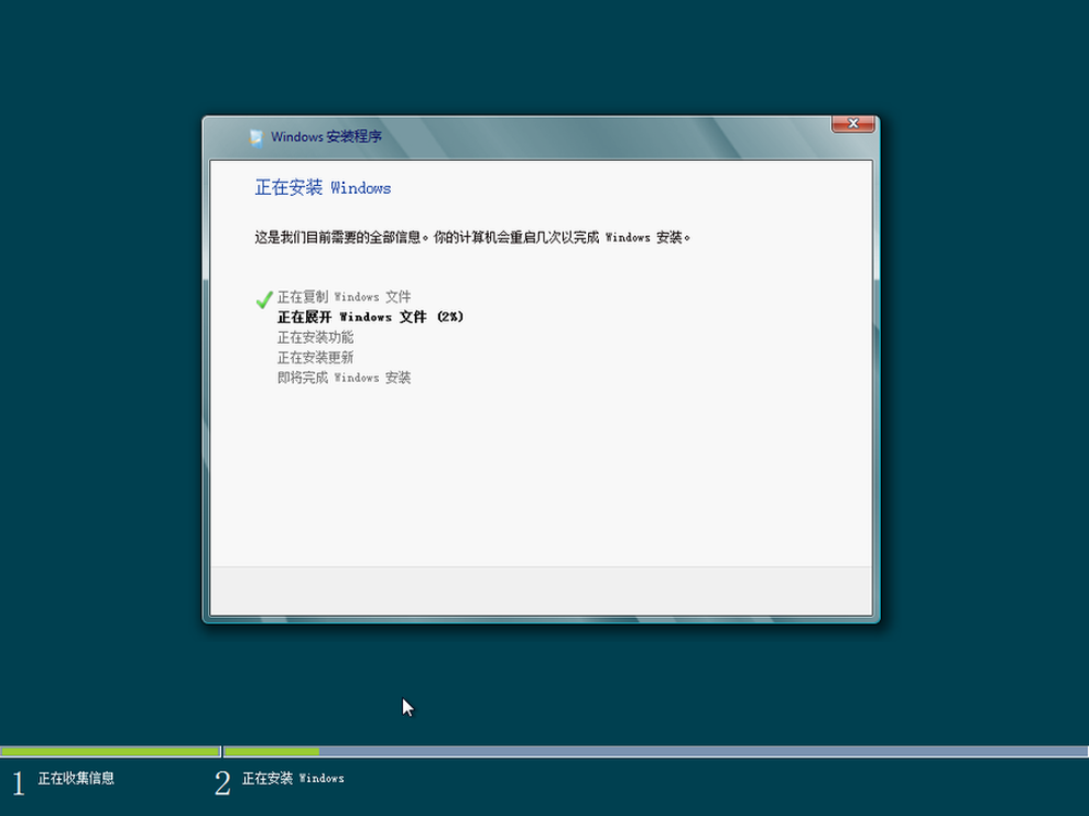 真是一个复古的界面啊,看到这个颜色,小编以为自己回到了WIN3.2时代,不过窗口和菜单与Win7安装界面是相同的。6/29