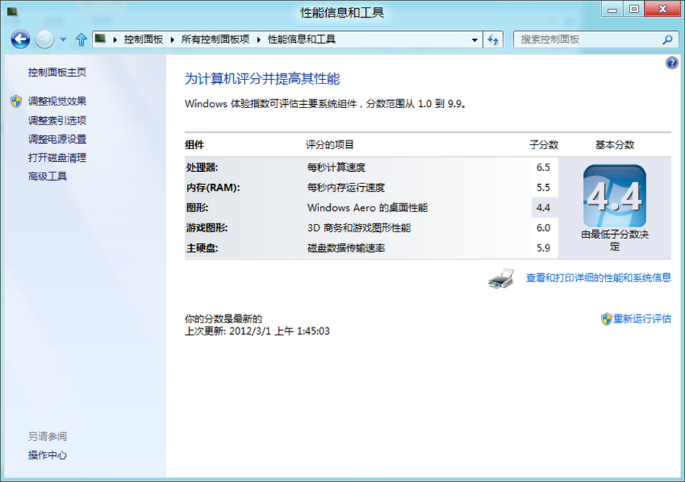 WIN8CP的系统分级功能已经将分数上线有WIN7的7.9提高到了9.9分,以面对目前硬件的飞速发展。