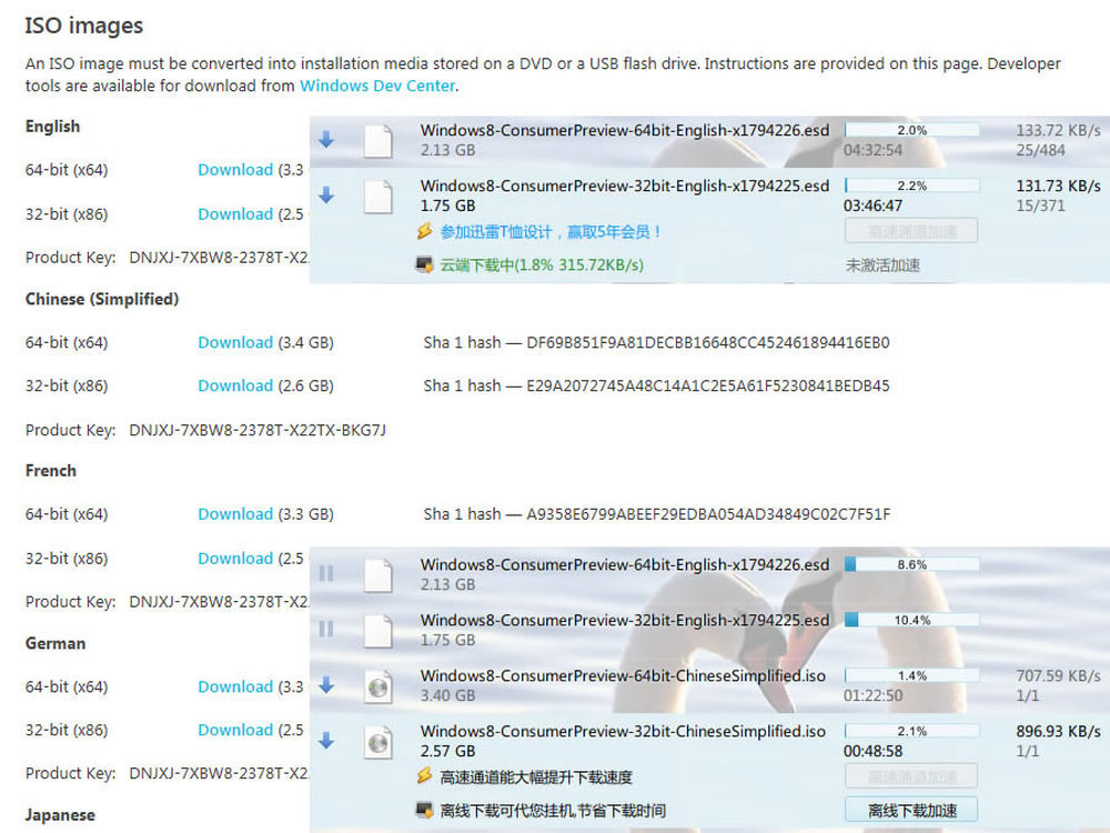 其实首先微软放出的是ESD格式的英文版,小编一边下载一边研究ESD文件该怎么安装,没想到没多久ISO格式的简体中文版就放出了,而且下载速度更快!一会功夫就下完了。3/29