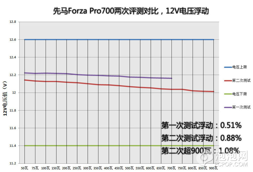 12V在第二次测试时浮动值略微有一点高,不过依然小于1%%。7/17