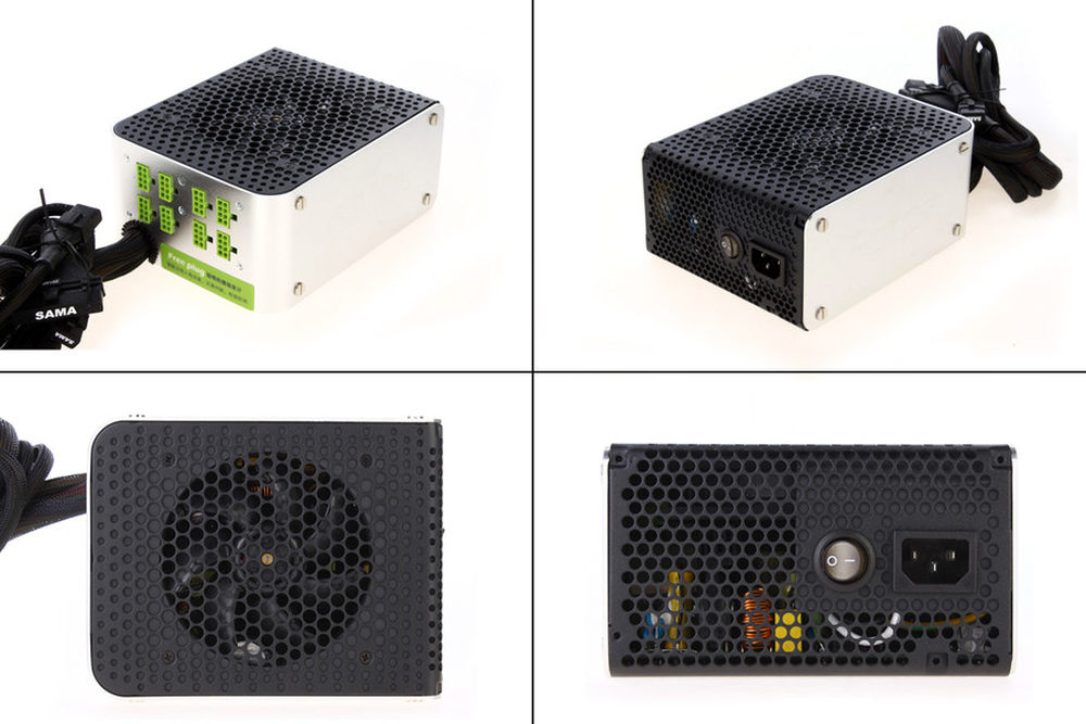 80PLUS白金牌电源不止这一个,但最漂亮的白金牌电源恐怕非这个电源莫属,我们简单看一下他们的外观。苹果风格,黑白配,而且虽然没有摘掉外壳,还是可以看出风扇是三洋的。4/17