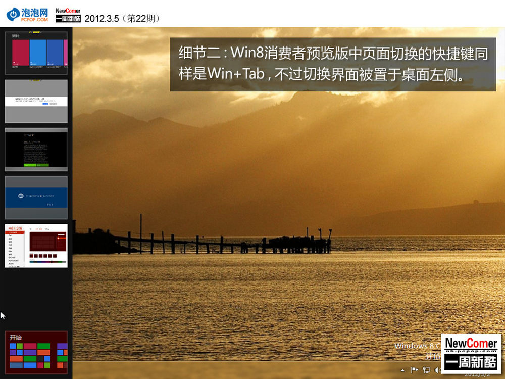 无疑,这种全新的页面切换效果在美化度上,的确相比Win7是缺乏了一些Aero效果的美感,但无疑也使得页面切换更为直观。4/14
