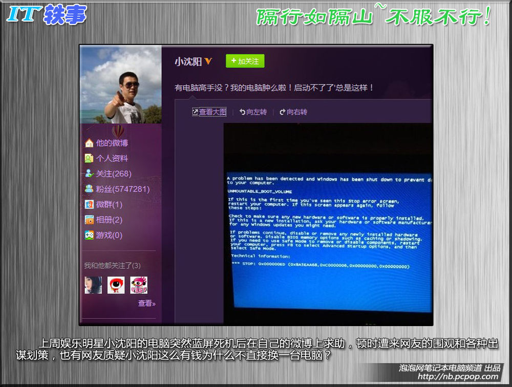 IT轶事:小沈阳电脑蓝屏后发微博求助