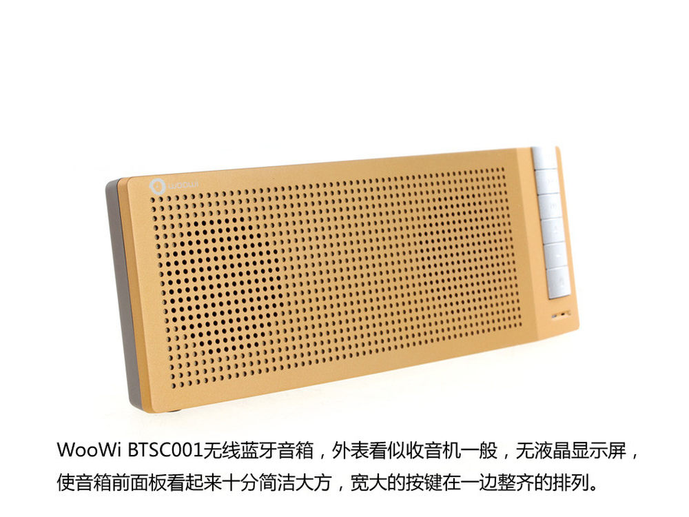 今年可谓是个无线音频年,几乎所有的厂商都推出了自己的新款无线音频产品,无论是音箱还是耳机,都引领着数码时尚潮流。近期WooWi就推出一款无线蓝牙音箱,BTSC001拥有手触感舒适的箱体表面,宽大的操作按键适合上了年纪的老年人,双全频单元音响结构,带来较好的声音表现。下面,让我们一起来欣赏下这款音箱吧!2/8