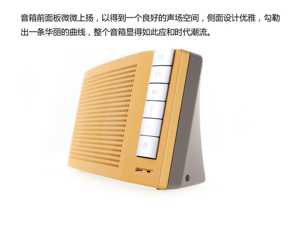 这款音箱侧面的曲线设计非常优雅,而且略微上扬的前面板,带给用户较好的声场空间。5/8