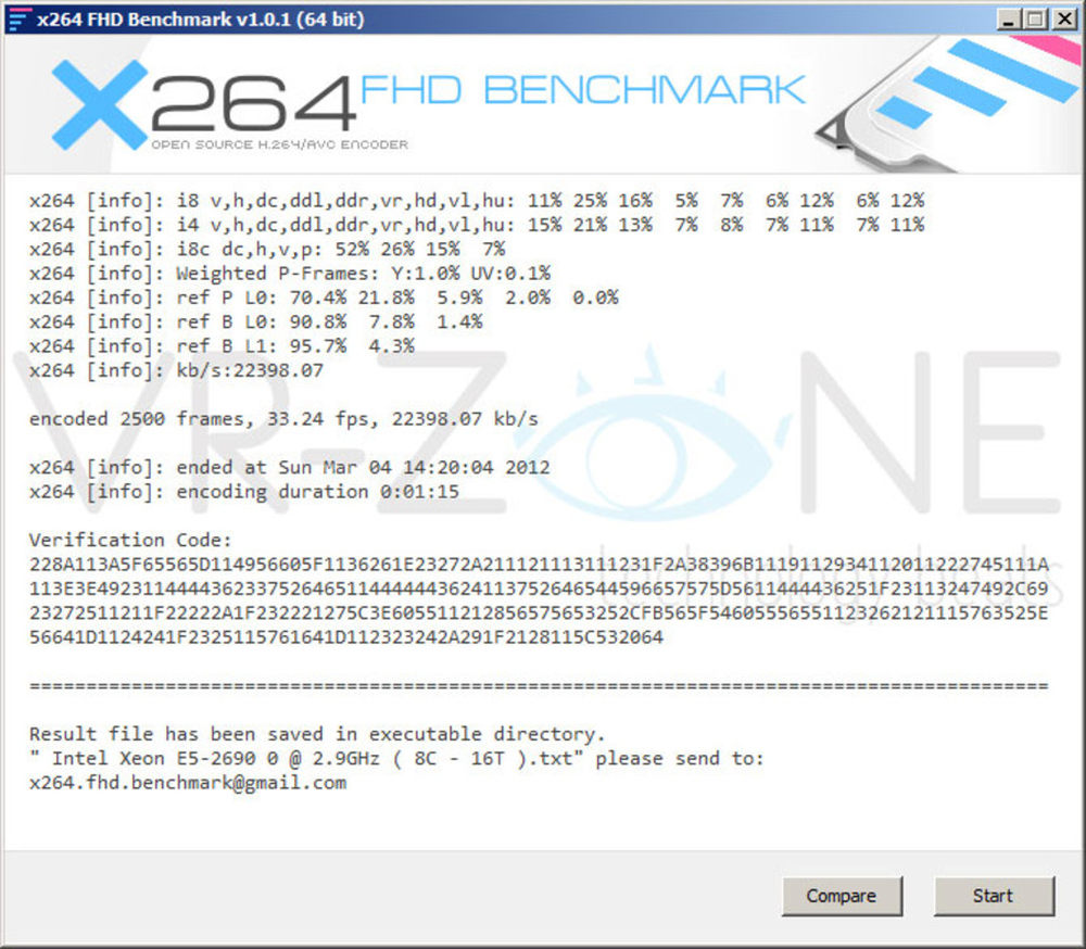 x264 FHD Benchmark测试,高清视频编码速度为33.24FPS。