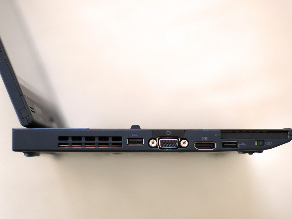 接口方面,X220T还是比较厚道的,在左侧配有VGA接口、2个USB2.0接口、DP接口、Express Card插槽,另外还有无线网络开关,方便用户实时的控制无线网络的接入。23/33