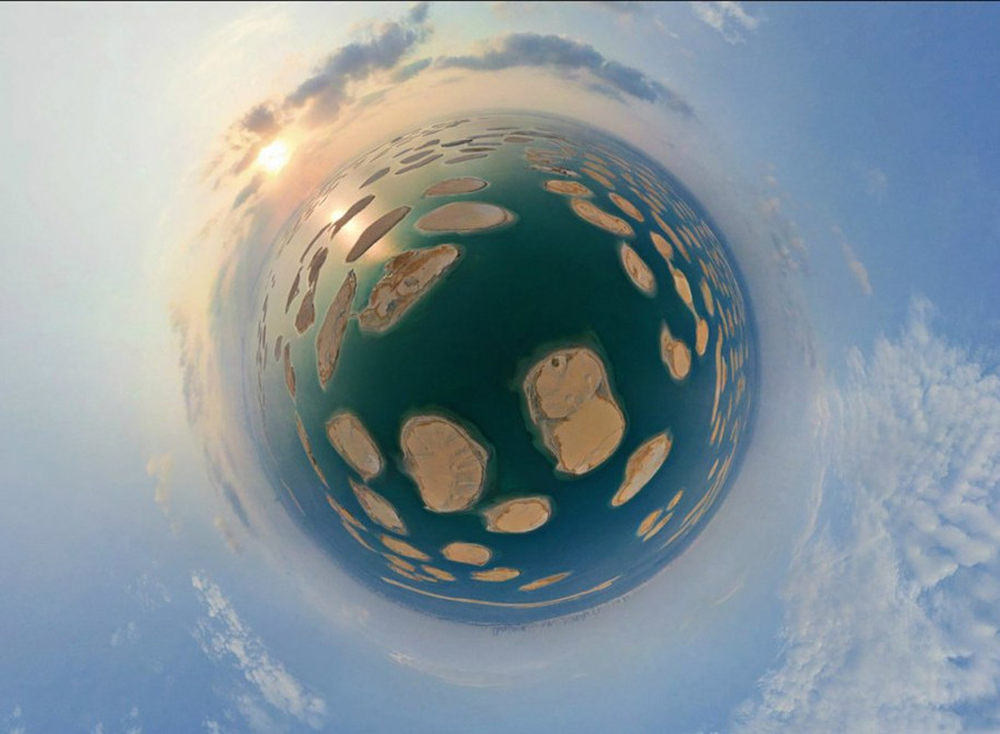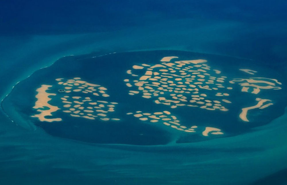 “世界岛”是全世界最大的人造海岛。迪拜想要用300个形状模仿世界各大洲的人工岛屿组成一个微缩版的地球。这张图是从一万米的高空俯瞰“世界岛”的图景。21/21