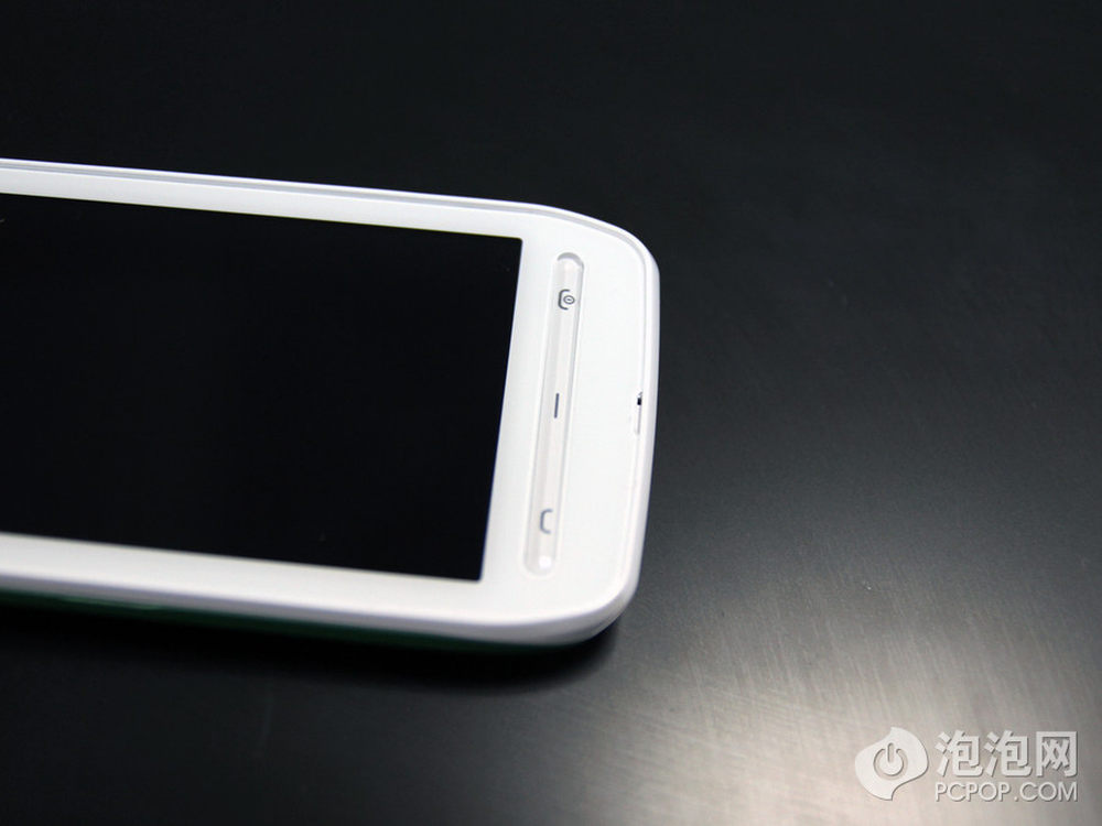 在屏幕下方可以看到手机的三个系统按键,从左到右依次是接听键、Home键以及挂机键。4/18
