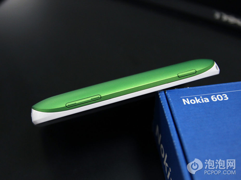 诺基亚603还拥有红色后壳,红色后壳采用的是光面设计,而不是像绿色后壳那样的涂有阻尼材料。