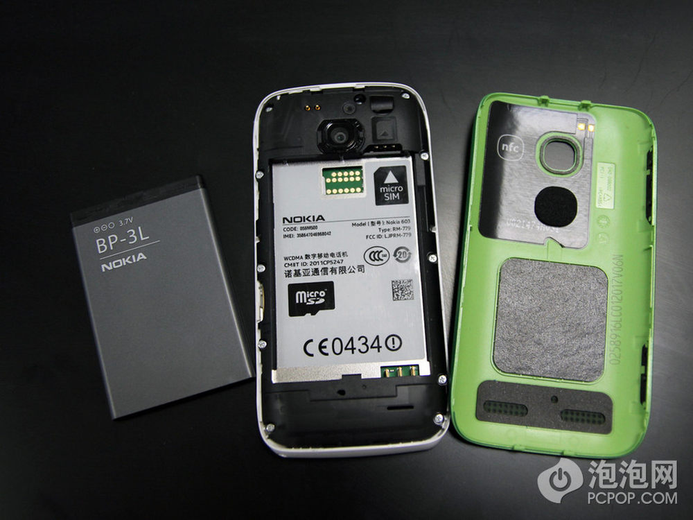 打开手机后壳就可以看到电池仓的构造。从手机后壳上我们可以看到NFC字样,这也表明手机支持NFC技术。11/18