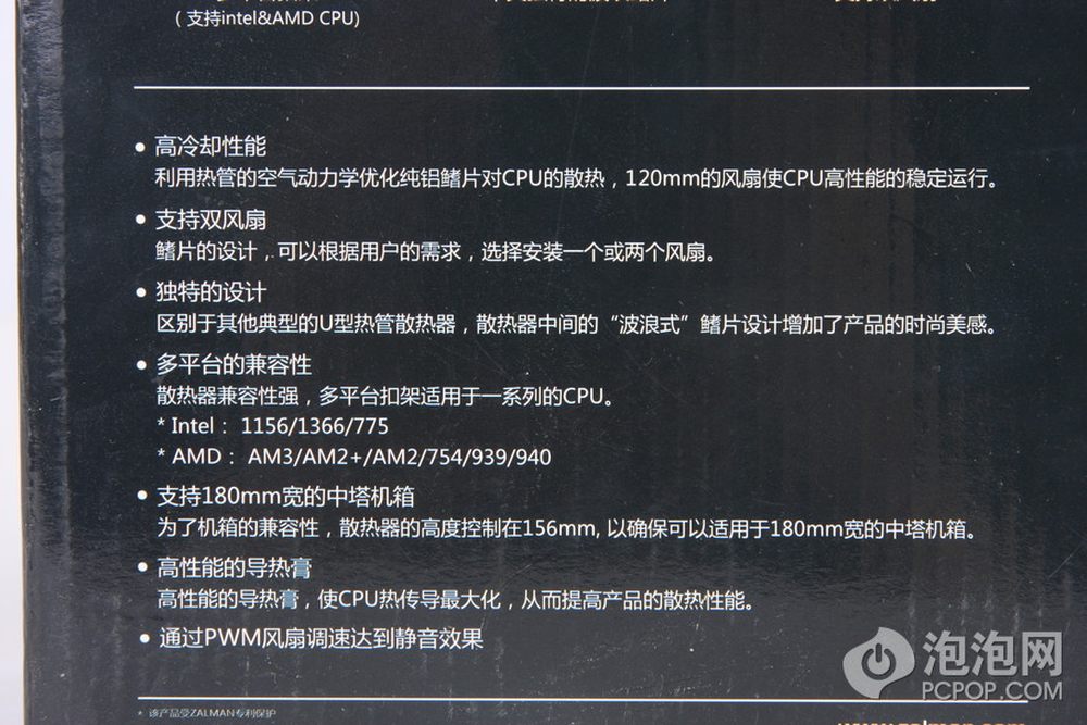 这部分我们第三次看到了散热器的特点,第一处是用图标方式在包装正面下侧,第二次是包装上用实物图展示,第三次就是用文字描述。6/20