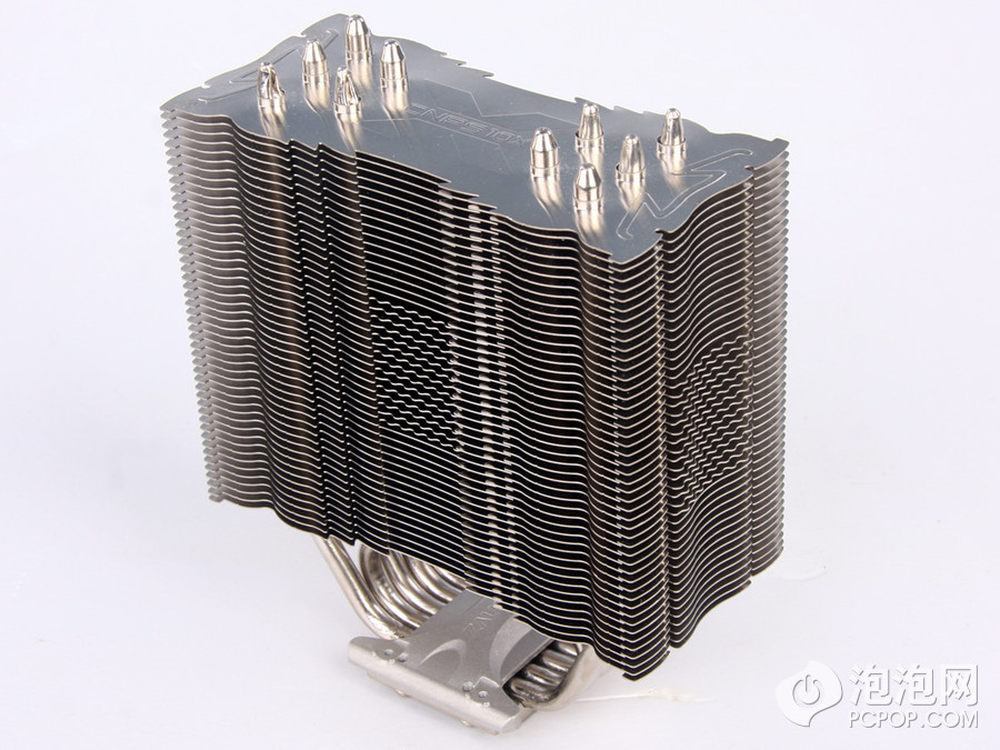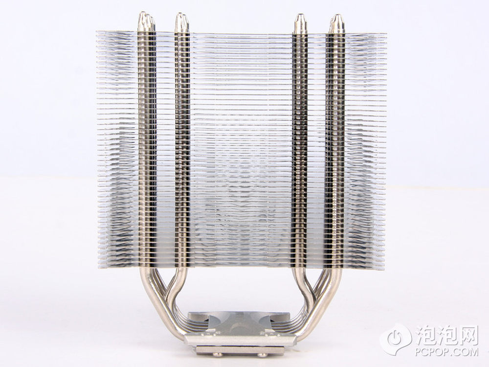 这款散热器的热管排布分2组,一组3根在外侧,一组2根在内侧,在风量较小的地方没有热管,这样排布比较合理。而且从照片中可以看到鳍片排练非常整齐,有利于风流顺利通过带走热量。11/20