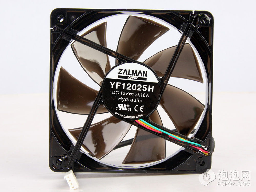 思民在风扇轴心印上了自己的Logo,看不出原厂的标示了,风扇采用了一种类似液压轴承的轴心,对延长风扇寿命有好处。工作电压12V,最大工作电流0.18A,这个电流对12cm风扇来说比较低,即便满载时噪音想必也不会很大。14/20