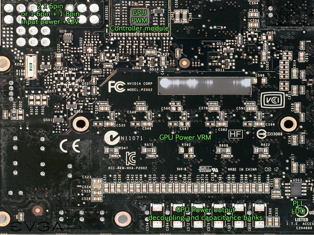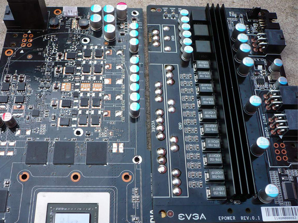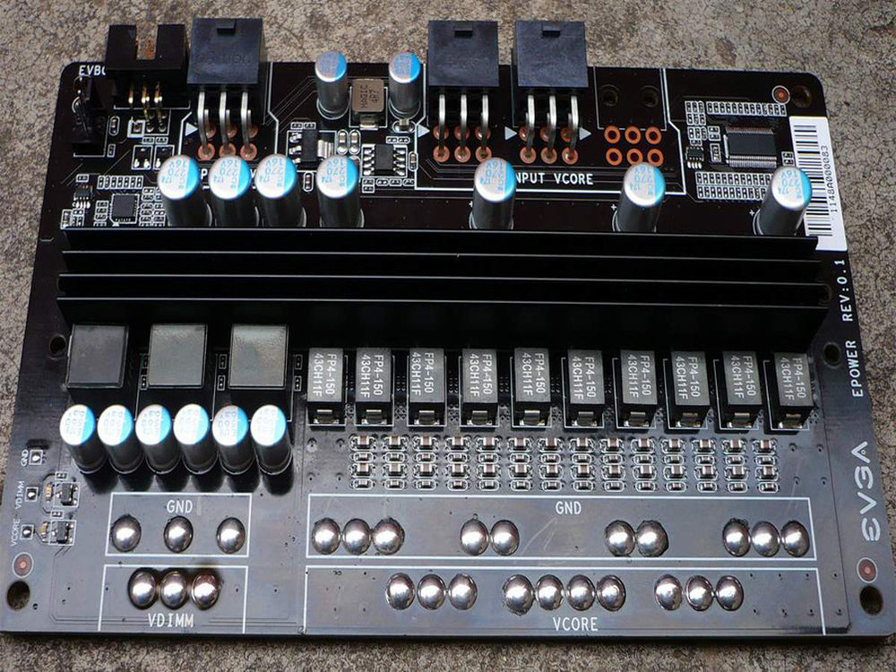 EVGA的EPOWER外置供电模块。本文选取了八相供电设计版本,另外EVGA还提供了图示核心、显存分离的10 3相供电设计模块。