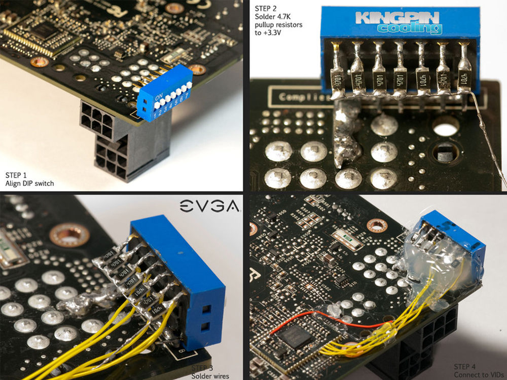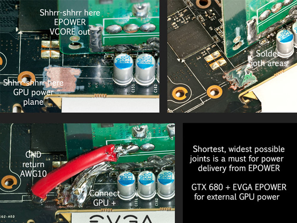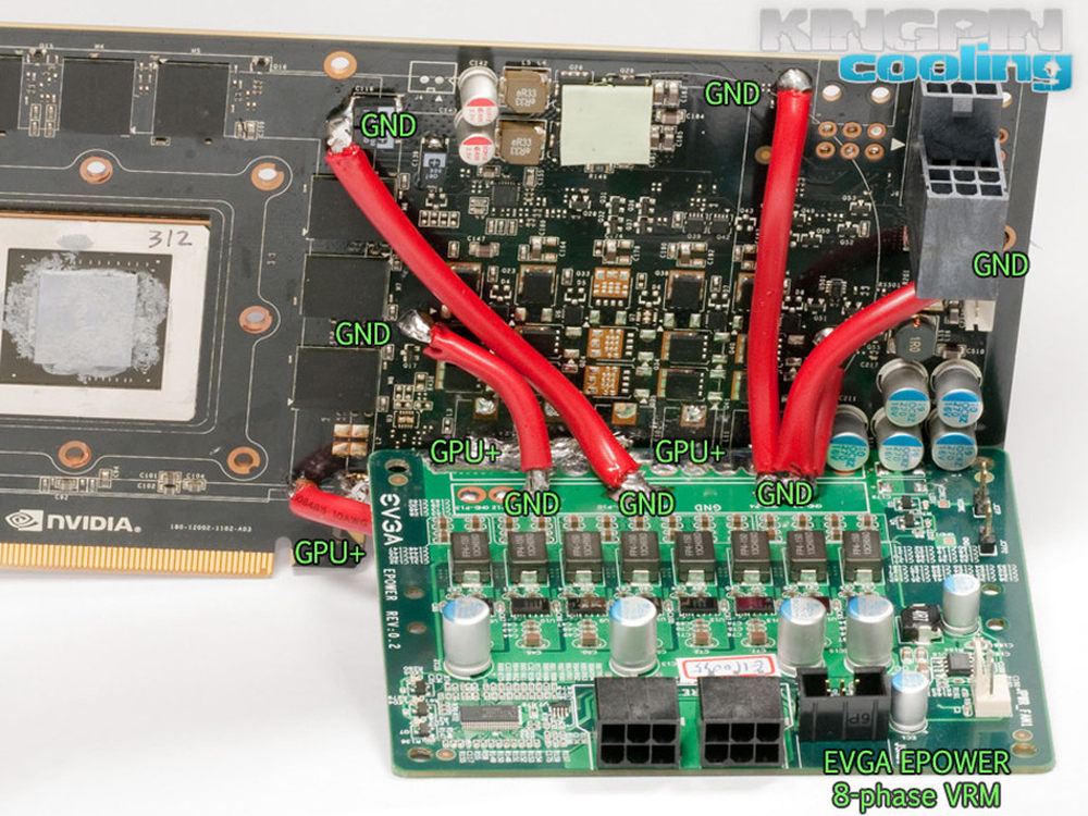 前不久EVGA GTX 680液氮疯狂超频核心狂飙1.9GHz,如此大的超频幅度既有全新的28nm工艺、液氮散热的功劳,当然也少不了改造的供电部分,近日来自kingpincooling论坛就给出了一份改造报告,教你怎么创造世界纪录。2/21
