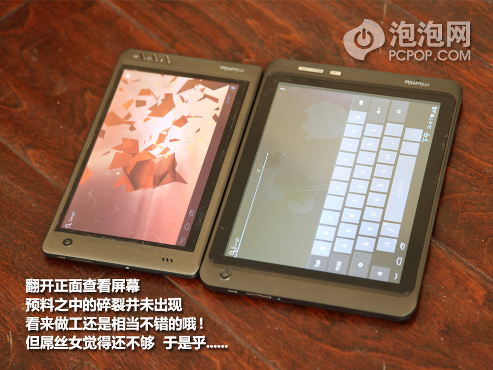 相对于之前高跟鞋锋利的后跟,屌丝女的屁股肯定是没有尖的,所以两款蓝魔的平板电脑完好无损。13/29