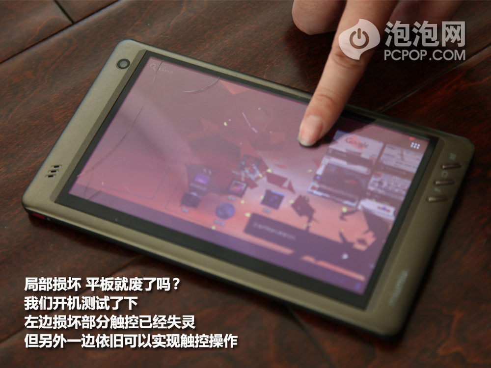 屏幕碎裂,如果发生在其他平板电脑上,说不定就得更换屏幕了。但通过现场所拍摄的图片可以看到,蓝魔W19屏幕没有碎裂的部分依旧可以实现正常的触控效果。9/29