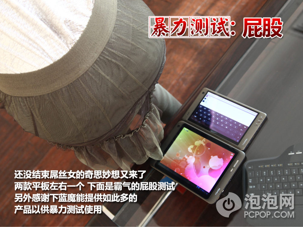 没错~你没有看错!这就是屌丝女的臀部,有奉献精神吧!看这架势你应该也知道两款平板要接受怎样的考验了。10/29