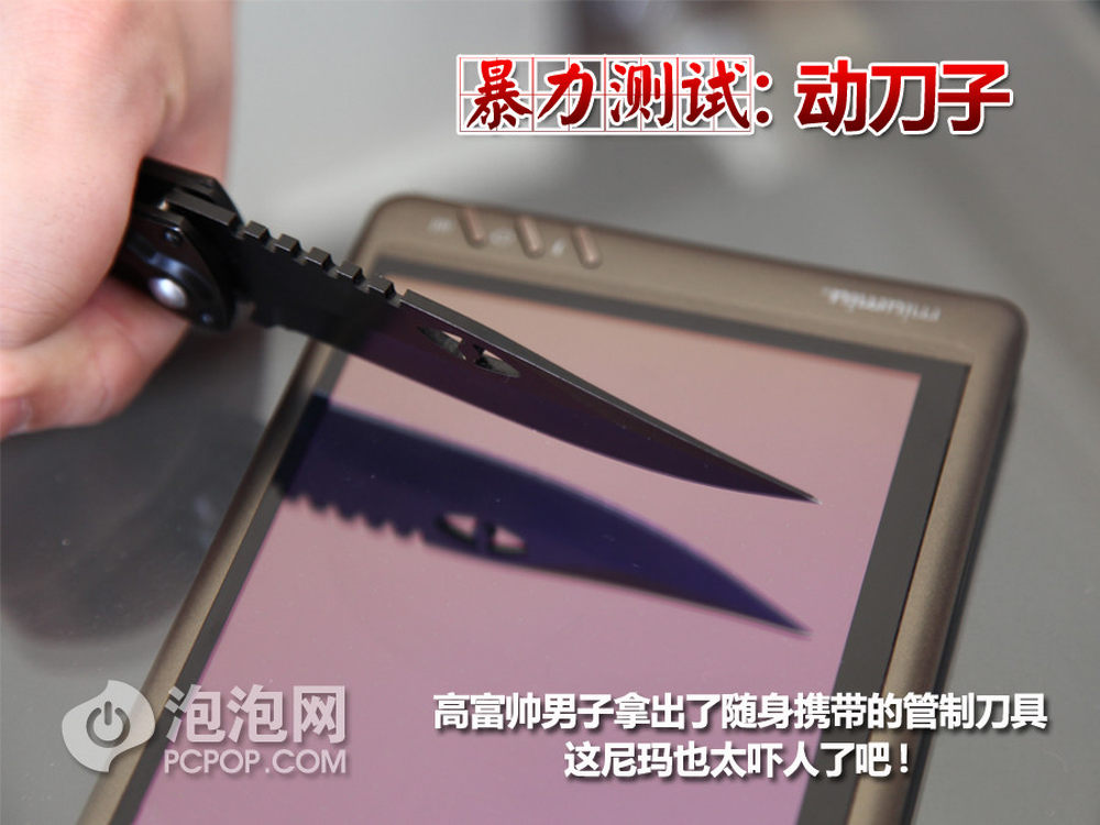 之前的螺丝刀就已经够锋利了,这回的管制刀具可能不在屏幕上留下划痕吗?笔者真是痛恨死“高富帅”男子败家的行为了。19/29