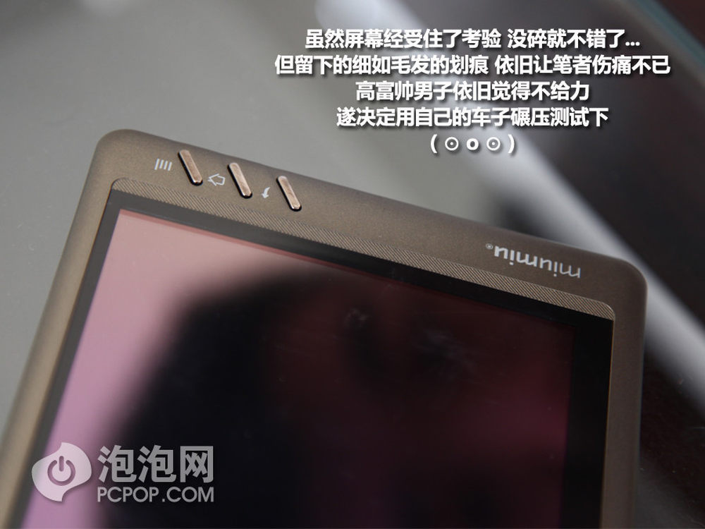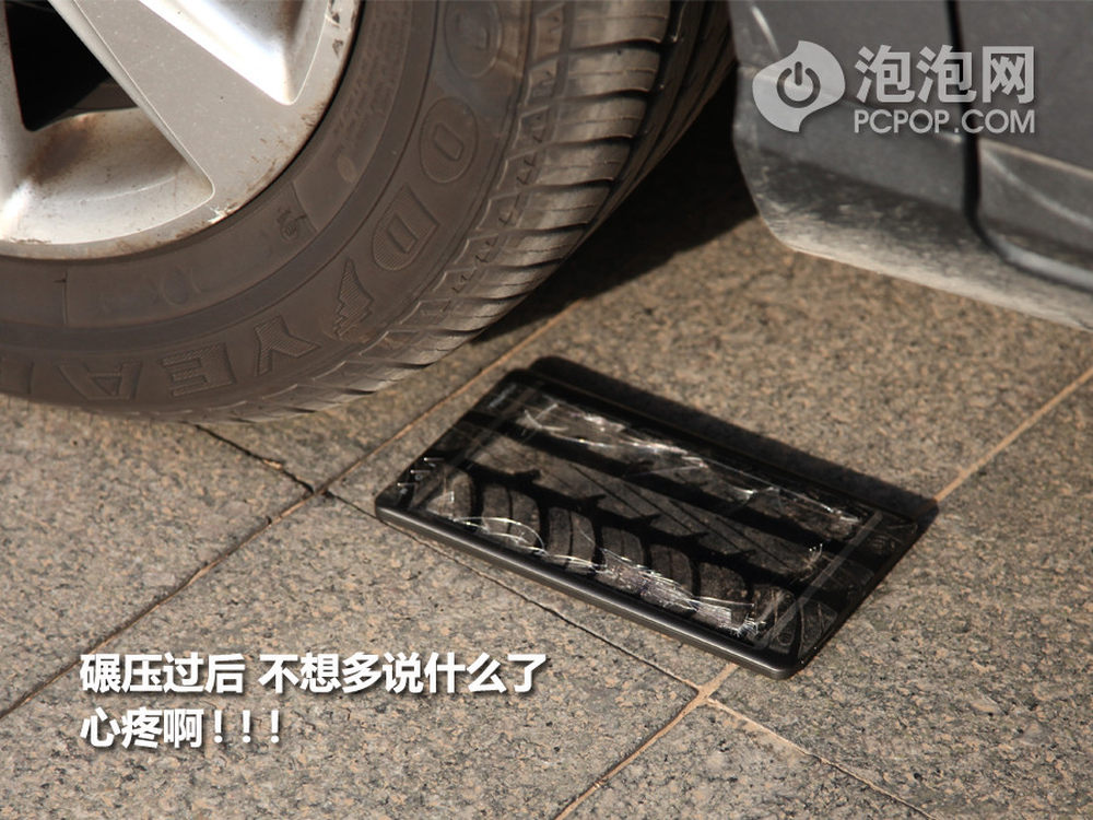 近距离特写,为了确保测试的真实性,我们并没有擦去屏幕上的碾压痕迹。23/29