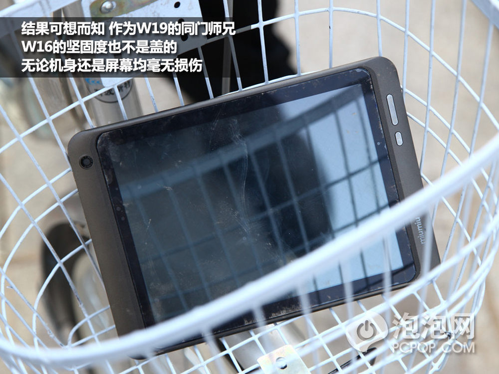 其结果可以看出与W19使用机身材质的W16虽然整体更宽一些,但是面对自行车的轱辘还是毫无压力的。26/29