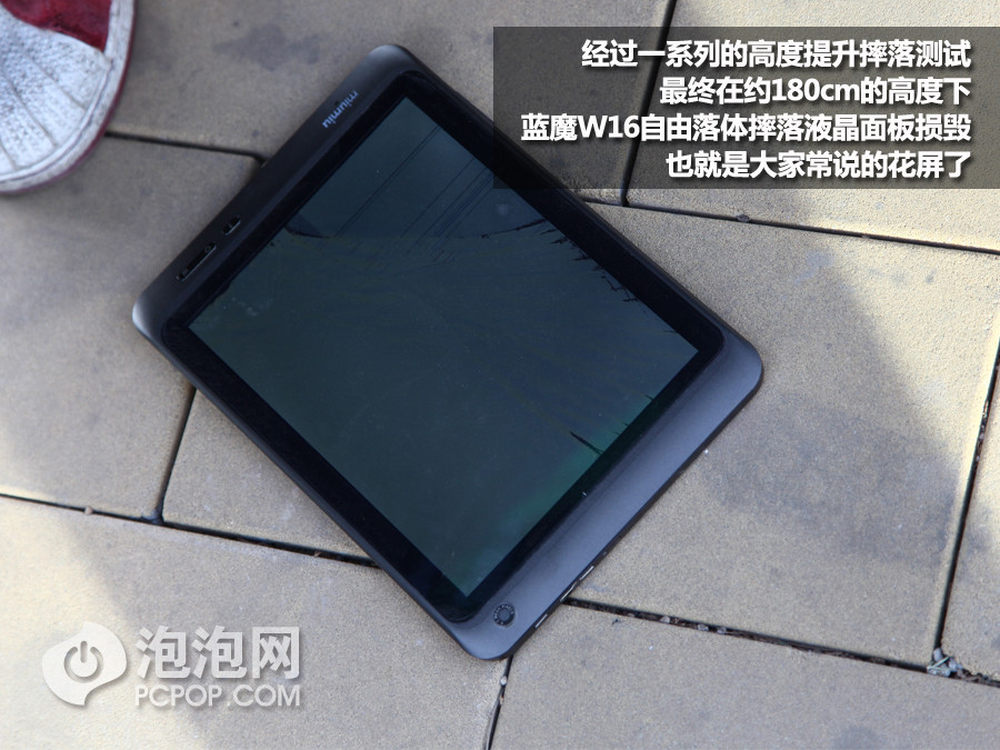 逐渐的增高落差后,让我们惊讶的是这款蓝魔W16平板电脑却一直毫发无损。而我们的宗旨确是暴力测试,也就是要测试它的极限。所以高度最终定格到约180cm,蓝魔W16终于不堪重负。28/29