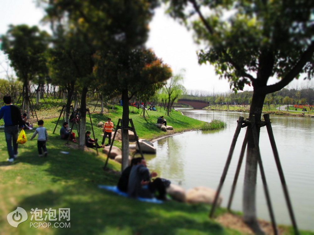 平视角时使用微缩景观,能够突出横向(或是竖向)一条区域内的景物。其余地方将全部模糊。小编对准树林中的游人拍摄,画面上下两块就出现了模糊,而中间一条画面就显得更为抢眼,是一种强调主题物的好方法。8/16
