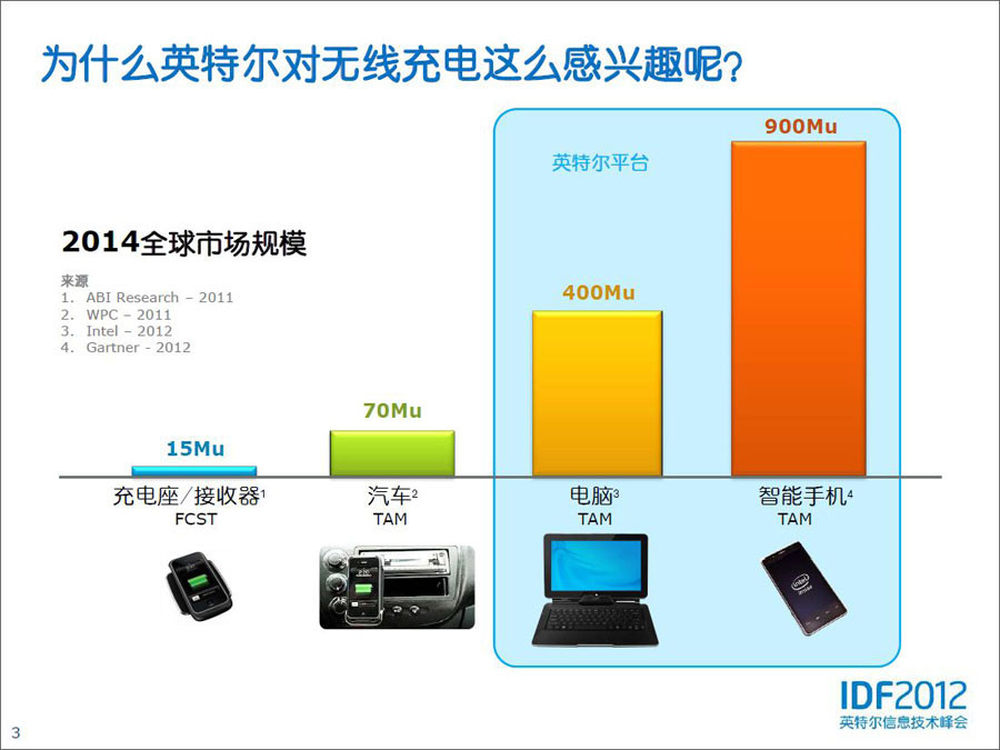 陈博士首先为我们展望了无线充电的巨大市场规模,Intel目前主推的超极本平台和Intel智能手机都将能从无线充电技术中获益。3/12