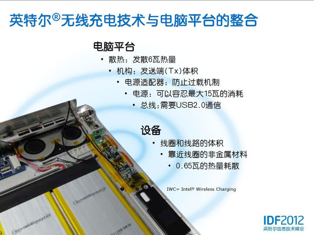 IDF2012英特尔信息技术峰会第二天下午,专门研究策略产品开发的陈佩佩博士带来了主题为“为超极本和电脑实现无线充电技术”的专题讲座。讲座开始前会场名额就满了,大家对无线充电技术非常关注,各厂商很早就已在研发无线充电技术,Intel的无线充电技术有何不同呢?2/12