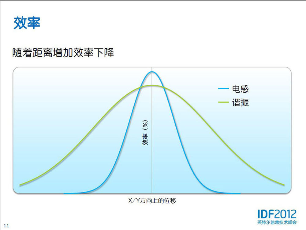 通过实验发现,无线充电的效率随着线圈之间(发送端与接收端)的距离增加而迅速下降,相比电磁感应技术,谐振技术能提供更平稳的变化,也就是说对位置的敏感度低一些。10/12
