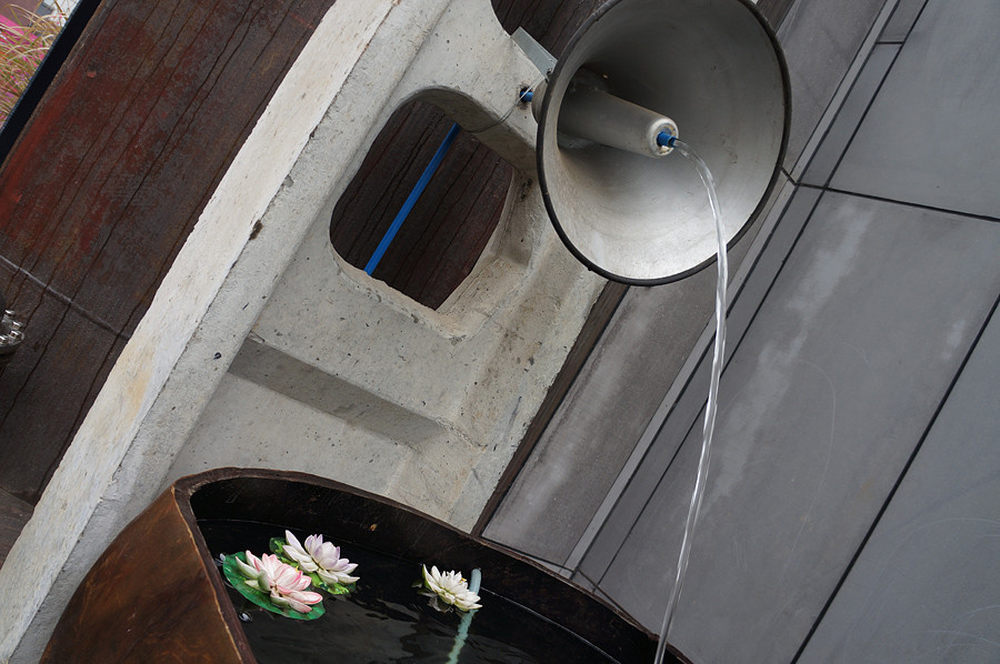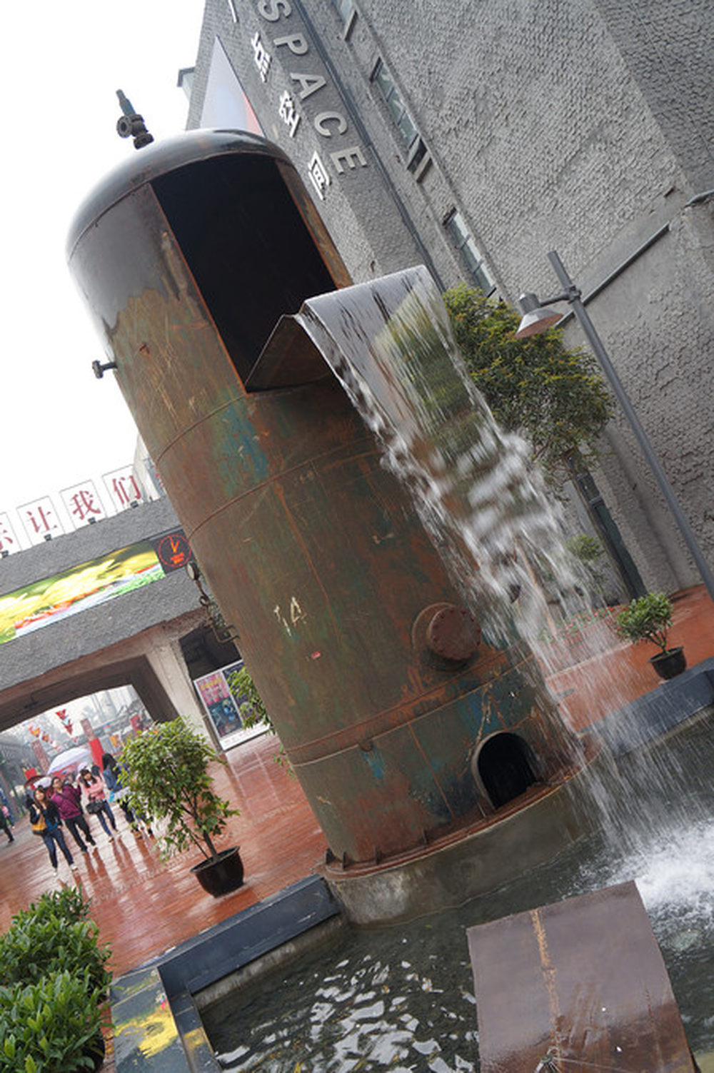 由某锅炉改造而成的人工小瀑布,虽然锈迹斑斑,但洒下的水还是清澈无比的。7/45