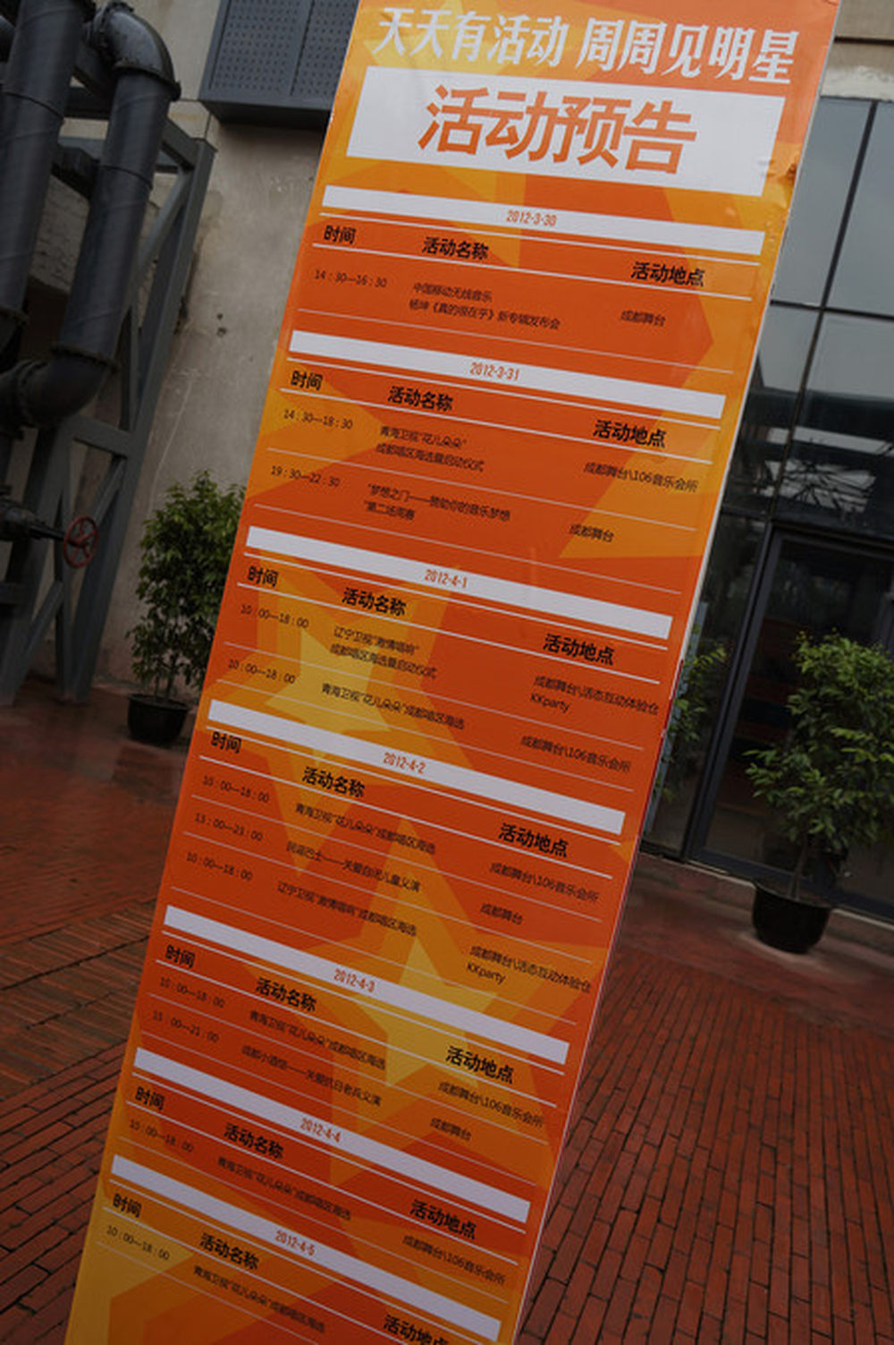 不少电台的成都站选秀也在这里进行,看看排期,还挺满的。32/45