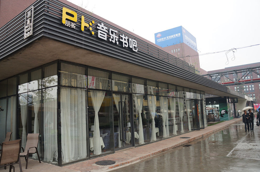 这种跟音乐有关的店在公园中随处可见。充满现代感的厂房下,掩盖不住那份细雨中的温馨。30/45