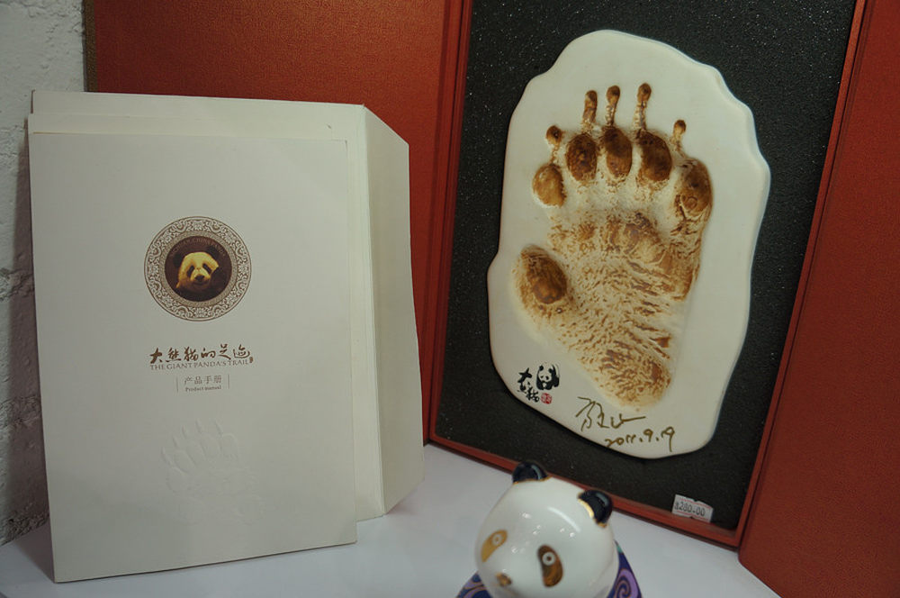 仔细看了半天,原来这个掌印并非印在石膏之上,而是一张硬质的纸制品。看来这个应该是人工制品了,而不是真的有熊猫按压出来的。39/45