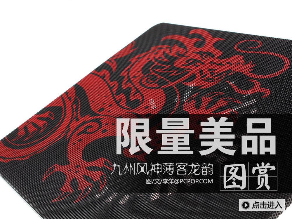 薄客是九州风神在龙年推出的首款笔记本散热器,这款散热器不仅和性感的iPad一样压榨了每一分厚度,而且多样化的鲜艳色彩也给玩家们带来了耳目一新的时尚感。不过很显然九州风神并没有让这个具有开年之作的重磅型号止步于超薄 炫彩的造型,如今薄客的龙韵限定版也抵达了泡泡网评测室。2/13