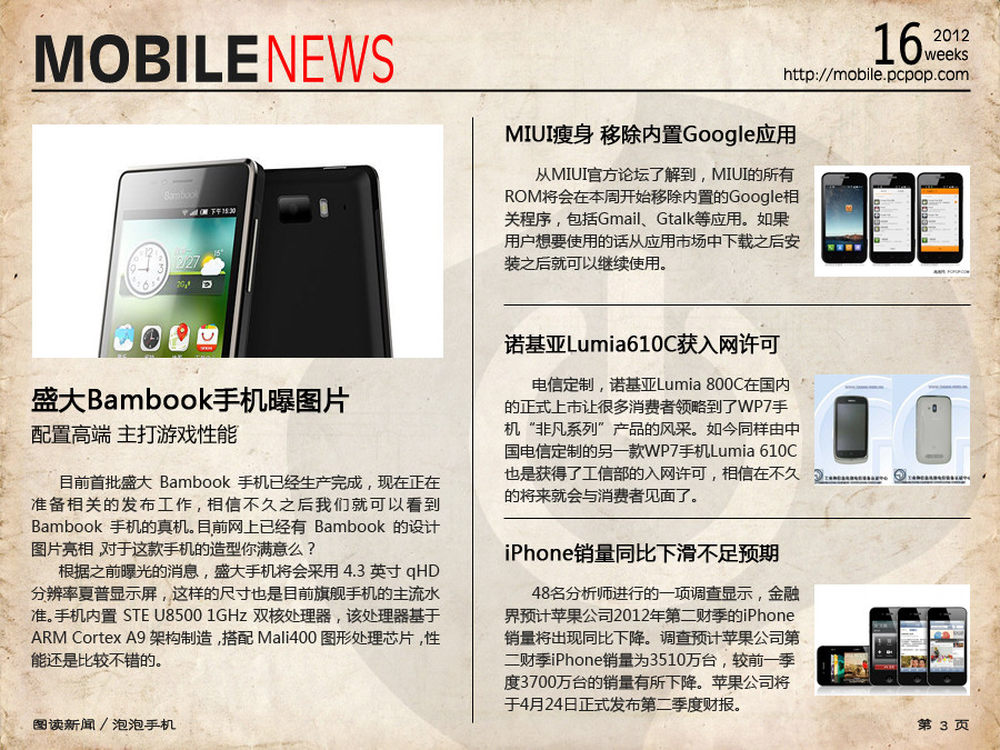 本周,我们将采用图片新闻方式为大家带来《一周热门手机新闻回顾》,这一次全新的尝试希望大家与我们共同体验,在分享的同时,期盼着朋友们给出有力的评价,我们将会采纳大家的建议,在日后每期的内容中创造更好的效果,带来更精彩的新闻内容。2/6