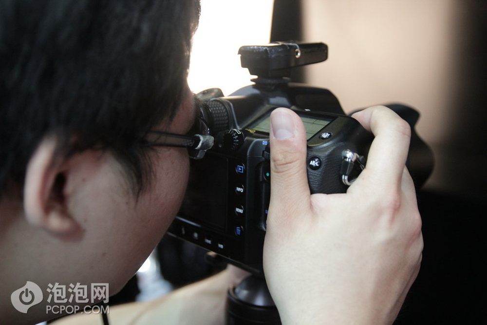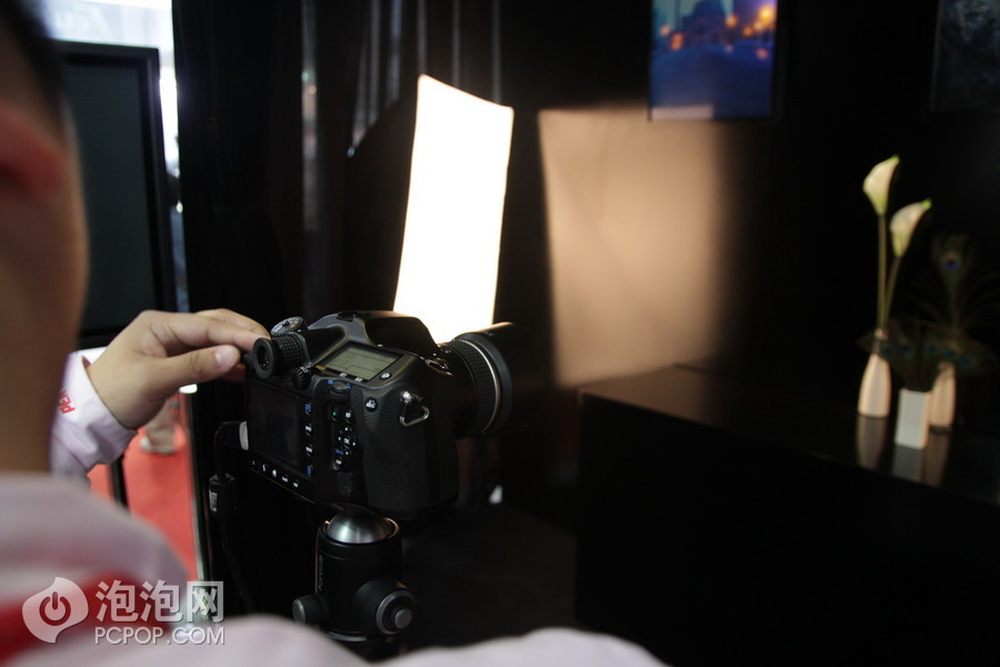 宾得现场使用645D体验高像素带来的魅力。由于中画幅机器较重,所以将相机架在了三脚架上。相机连接大屏幕,同步回放。3/6