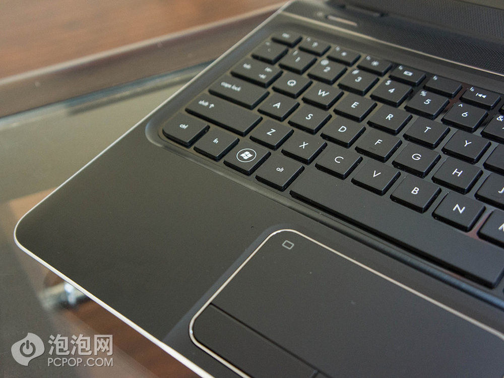惠普dv6触控板特写,双击触控板左上方区域,可快速开启/关闭触控板。17/21