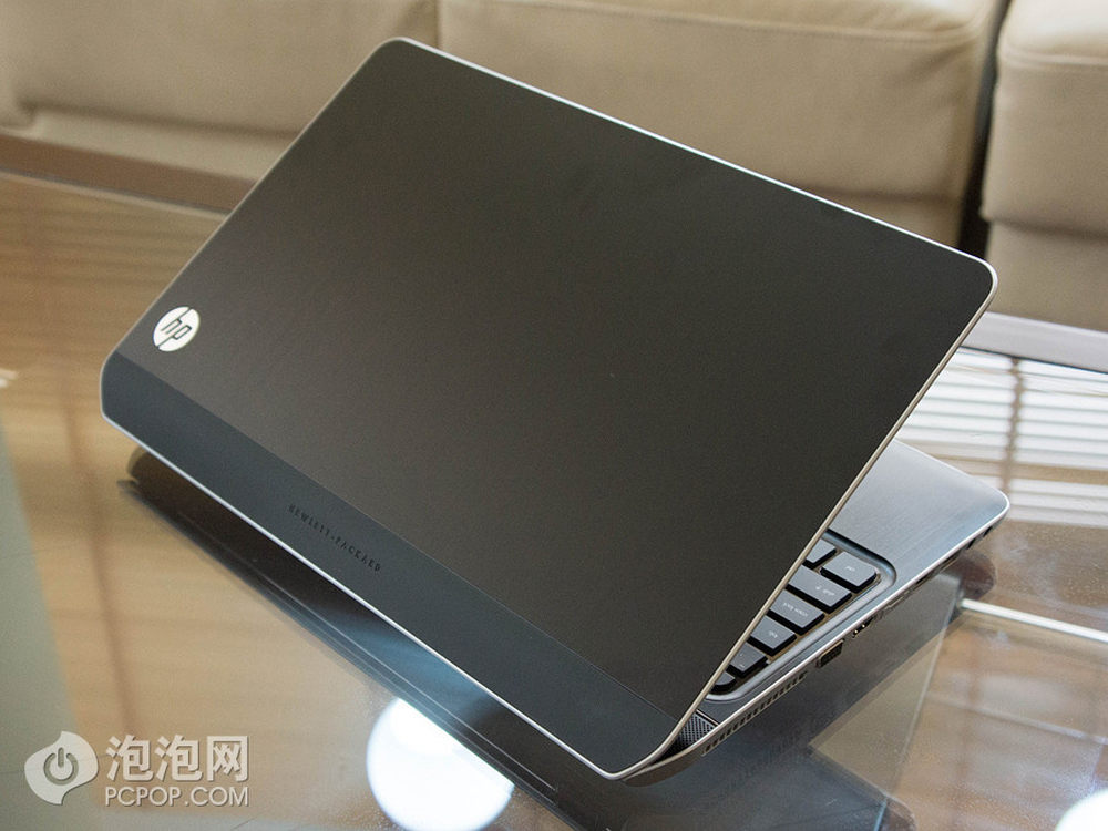 全新惠普Pavilion dv6笔记本使用了黑色拉丝金属顶盖,靠近转轴处为复合材质,用于无线网络信号传输。4/21