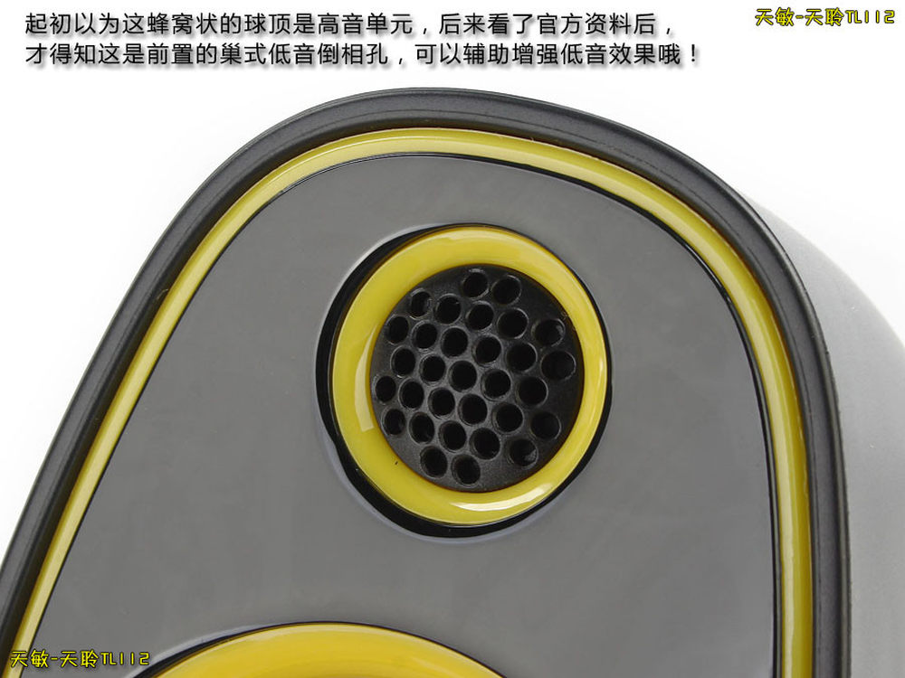 蜂窝状的球顶并不是高音单元,而是一只倒相孔,只为增强低音而设置,箱体虽小,但不能少了倒相孔。7/9
