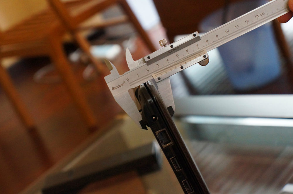 同方S40H整机厚度仅约21.5mm,厚度方面较其他品牌的超极本随没有什么优势,但考虑到接口,这个厚度还是相当可以的。18/18