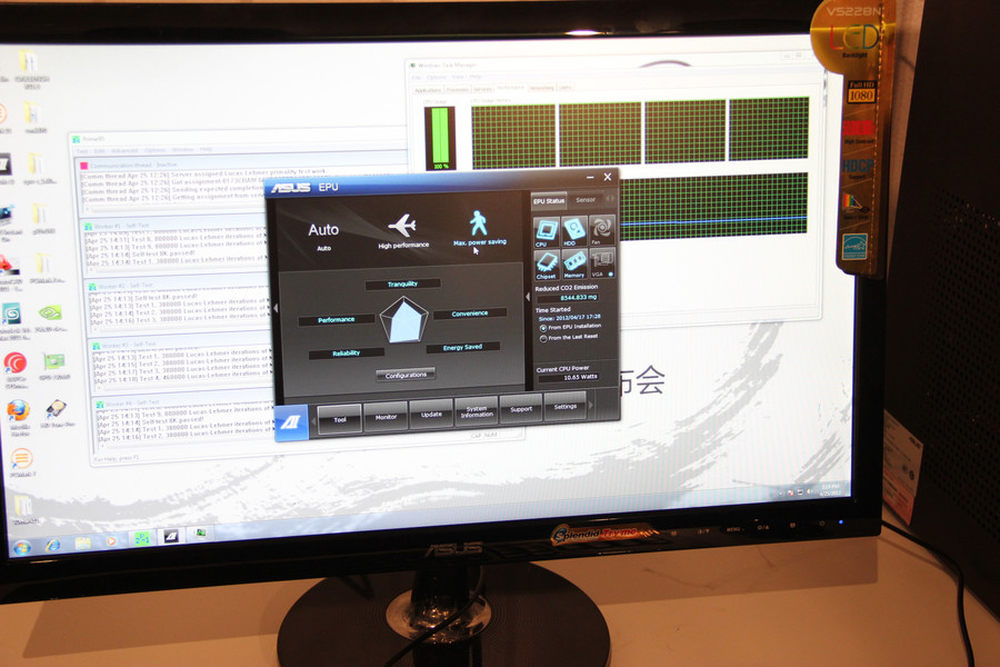 华硕晶品CM6870是主打家用的台式电脑,采用英特尔i5-3550处理器,相比较前两款产品,该机机箱更小,更能节约空间。另外该机采用了EPU智能节能技术,用Prime95将CPU加至满载,功耗仅维持在70W和90W左右。9/26