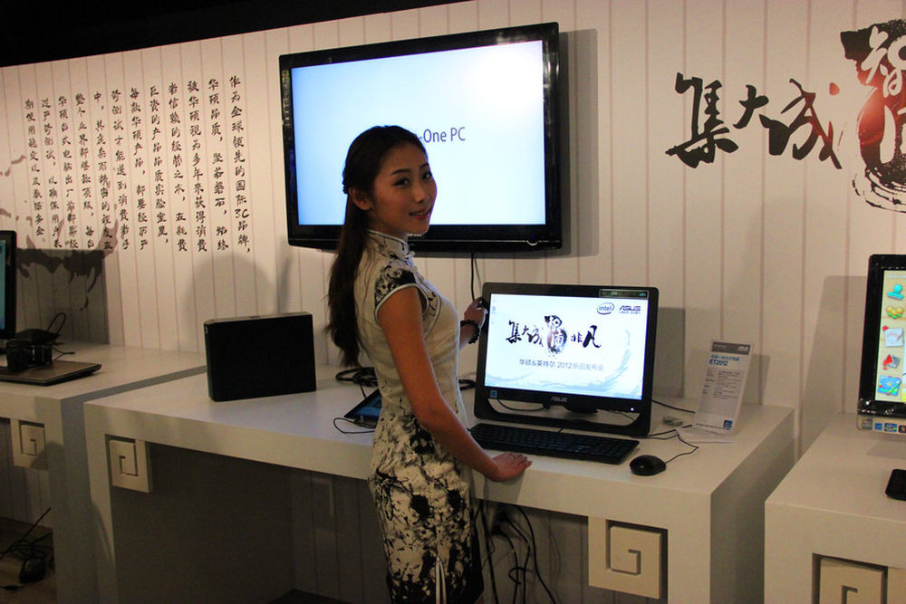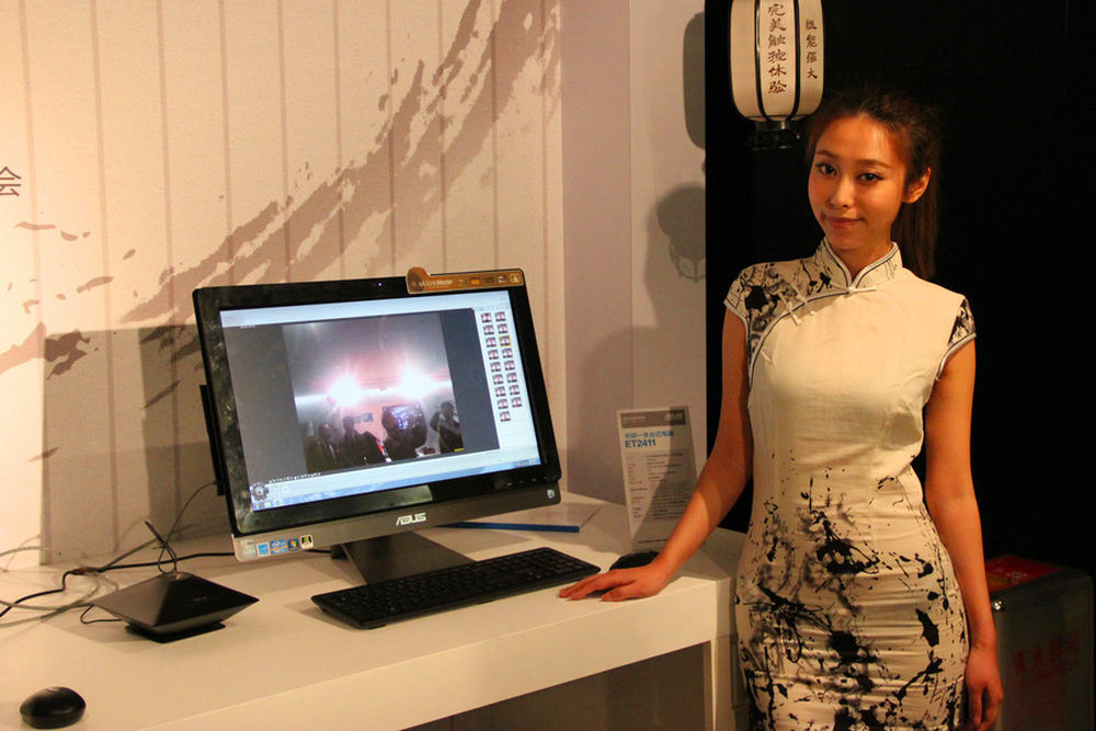闲暇时间,模特也情不自禁的玩起了华硕的一体电脑。18/26