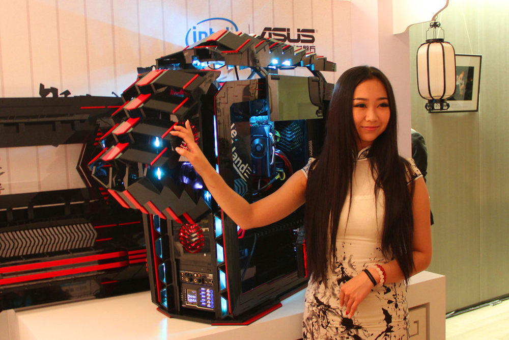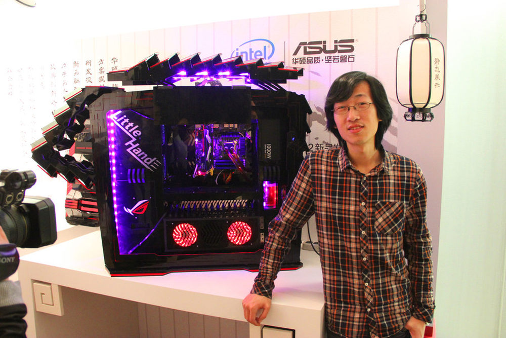 这台网友利用华硕硬件打造的巨型台式机着实吸引了不少媒体记者和网友的目光。顶端和后方的装甲鳞片形散热片均采用电动控制,只不过由于时间仓促,后方的控制系统还没有搭建,据悉在不久之后举行的华硕ROG发布会上,它还将与广大网友见面。20/26